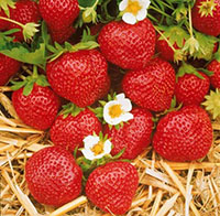 A French Everbearing hybrid variety which was introduced in 1991, Mara Des Bois has become wildly popular in markets in that country, and has recently become available here on the West Coast. A distant relative of the woodland Strawberry, it produces highly aromatic, small to medium fruits, that are extremely rich and sweet. With full sun it bears heavily throughout the season, into Fall, and again in the following Spring.