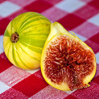 Smaller, bushy tree; great for compact gardens or growing in large pots! Sweet, juicy fruits (similar to Black Mission).