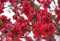 Maroon-colored skin and semi-freestone flesh. Sweet, with little or no tartness and a very pleasing, mild flavor. High Taste Test scores. Prolonged harvest, mid-July to mid-August in Central California. Very productive. Narrow, upright habit. 300 chilling hours. Self-fruitful.